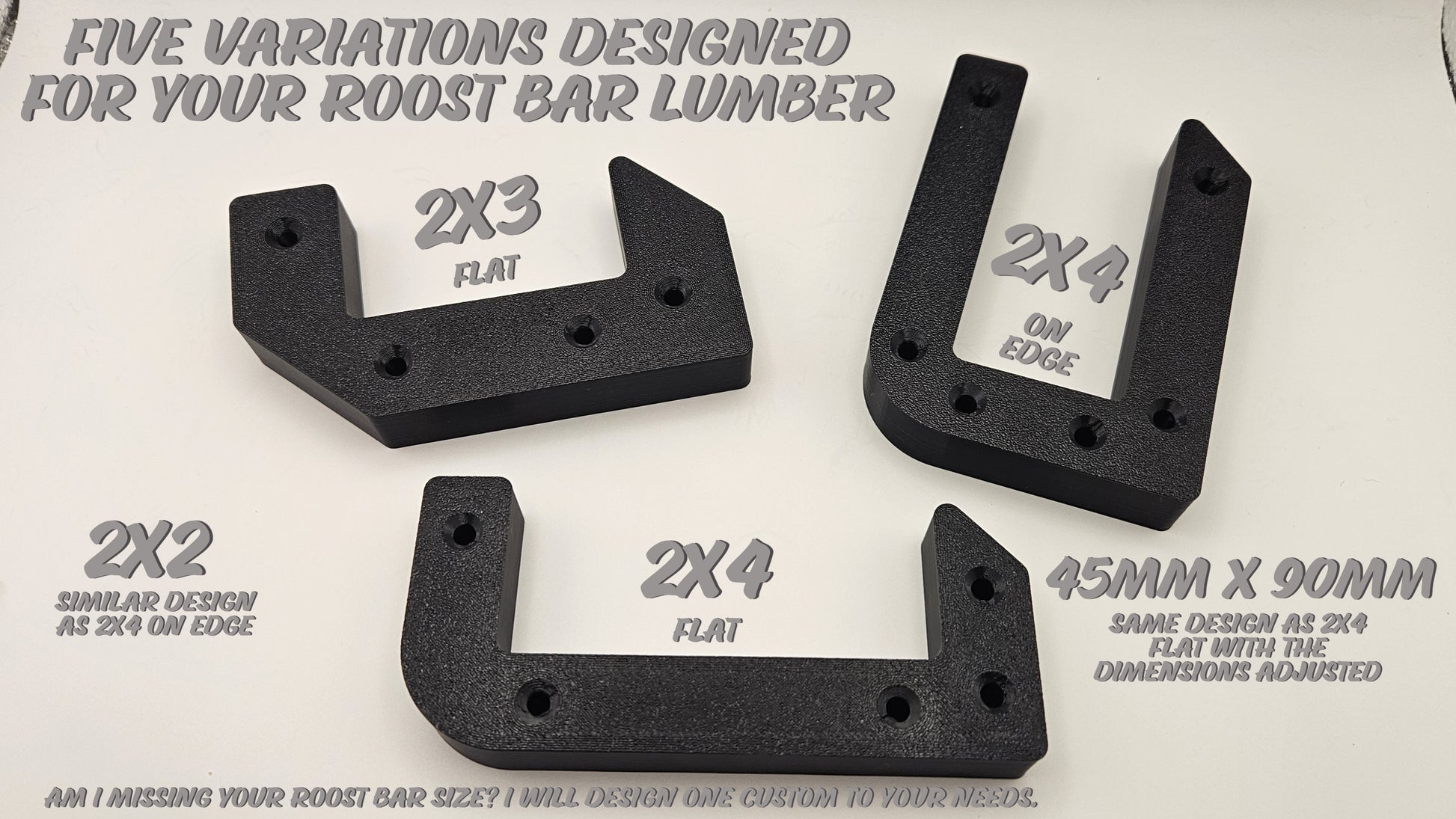 Available in five size variations to fit your preferred choice of lumber for your roost setup: