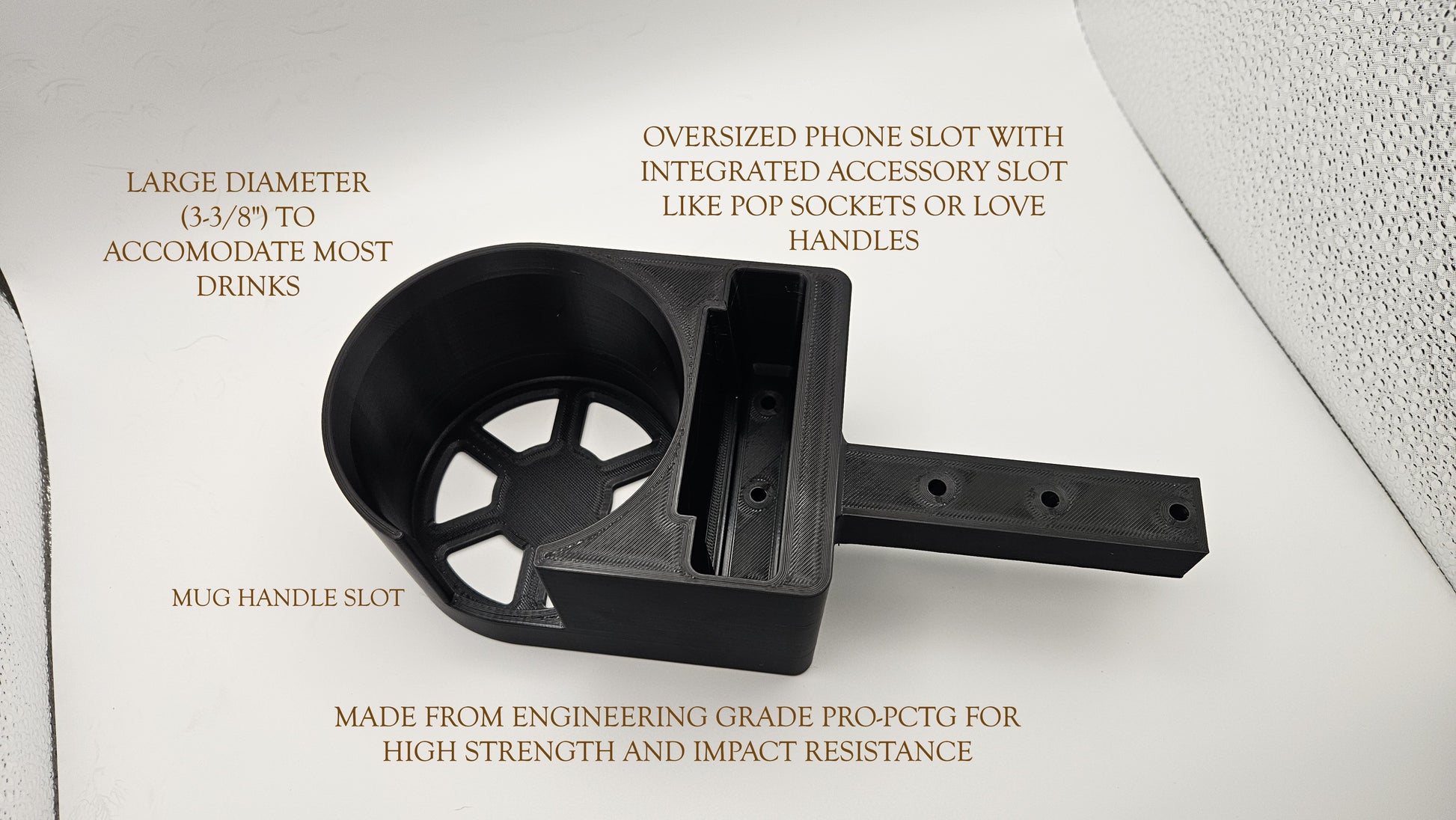 1 Heavy-duty 3D printed cupholder/phone holder combo